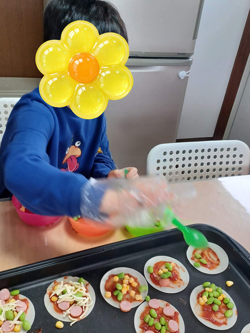 ウインナーだらけのピザや顔🥸のようなピザ・・・オリジナルピザがたくさん出来上がりました。